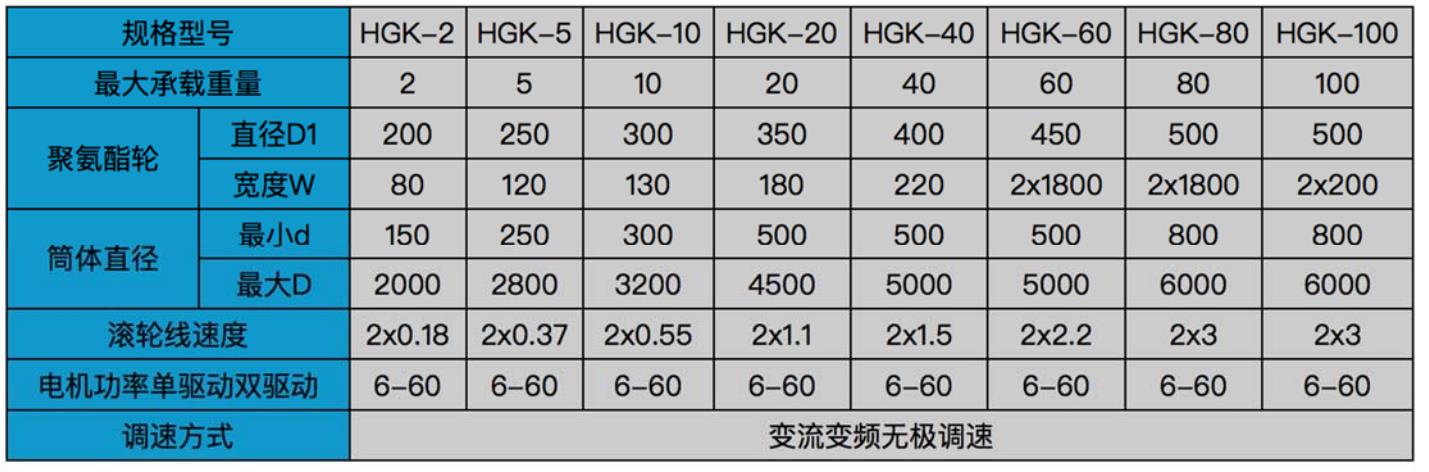 ★ 可调式滚轮架主要技术参数Main Technical Parameters for adjustable rotators